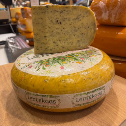 Voor het voorjaar hebben wij een heerlijke bijpassende kaas, namelijk de lentekaas! Onze lentekaas is gemaakt van gethermiseerde koemelk en bevat frisse toevoegingen: peterselie, ui, knoflook, honingklaver, bieslook, lente-ui en roze peperbes!